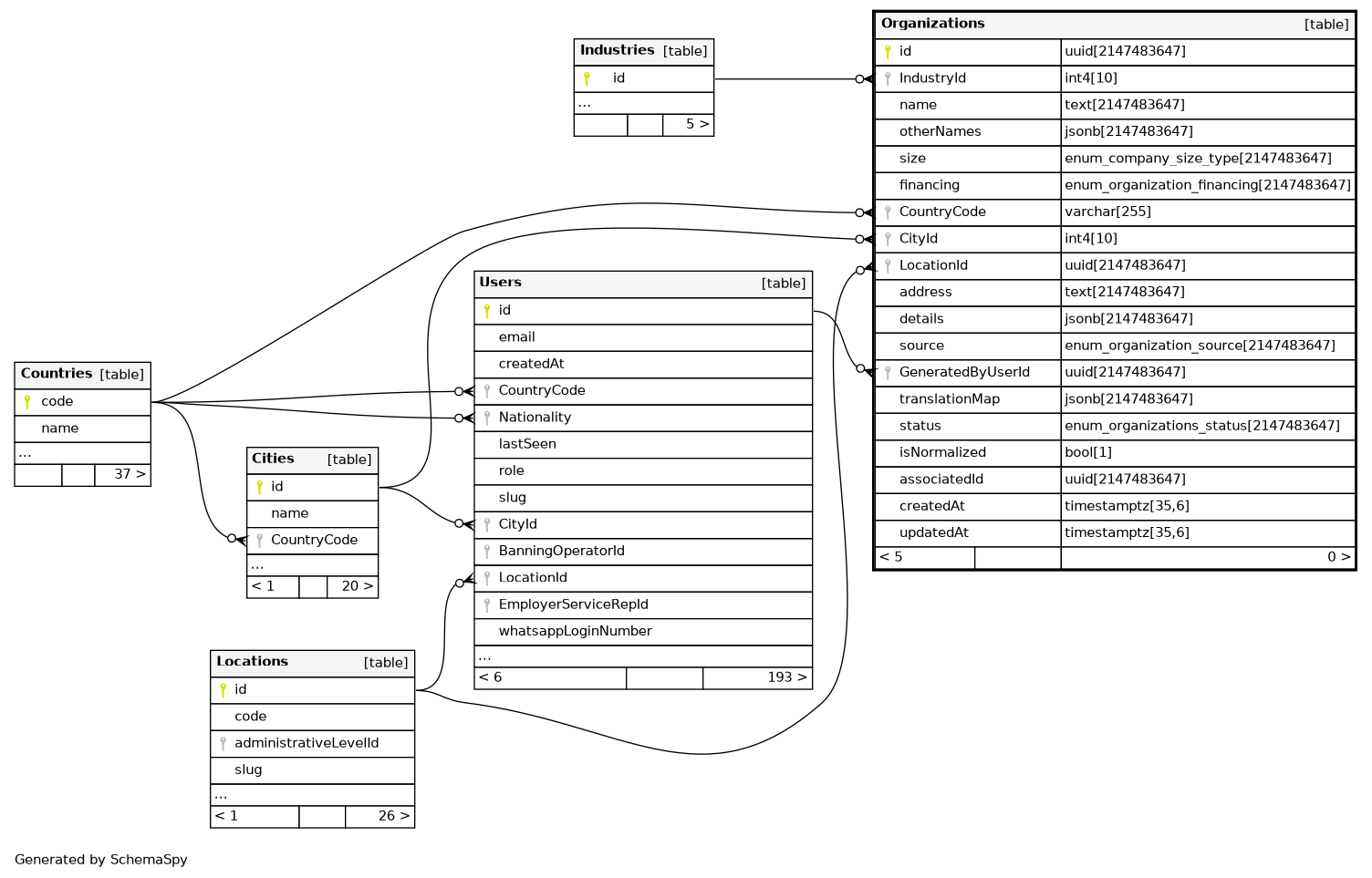 | Organizations_pkey | Primary key | Asc | id |