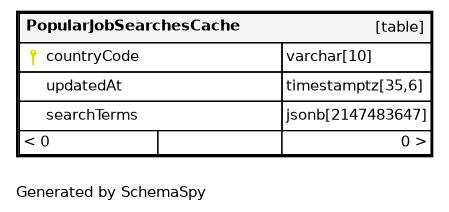 | PopularJobSearchesCache_pkey | Primary key | Asc | countryCode |