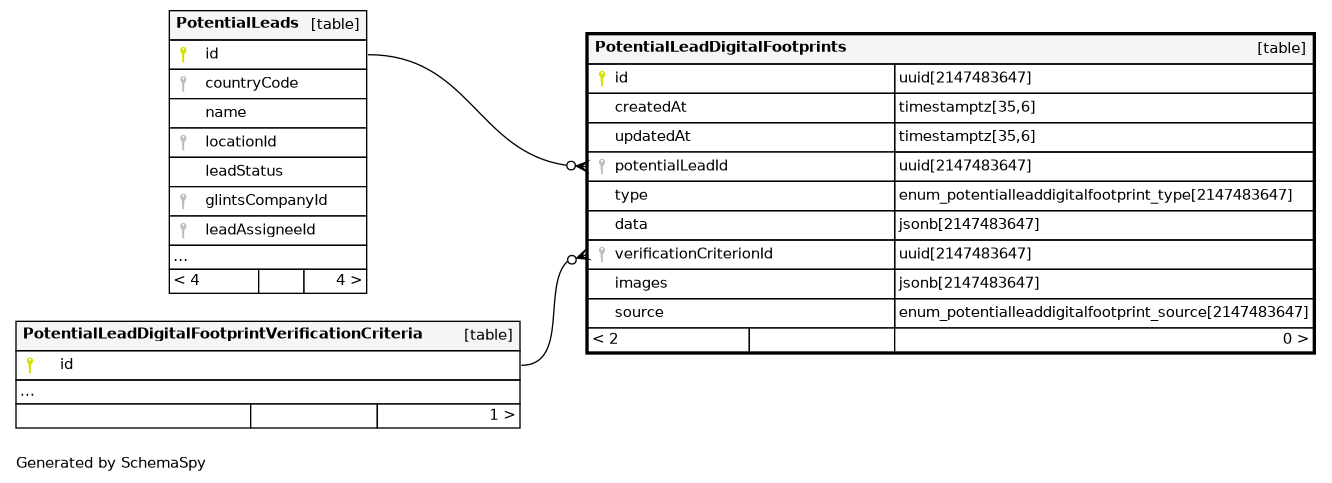 | PotentialLeadDigitalFootprints_pkey | Primary key | Asc | id |