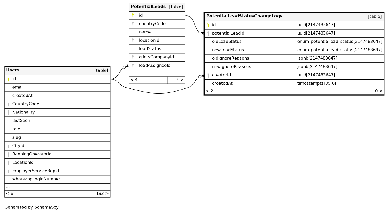 | PotentialLeadStatusChangeLogs_pkey | Primary key | Asc | id |