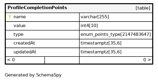 | Points_pkey | Primary key | Asc | name |