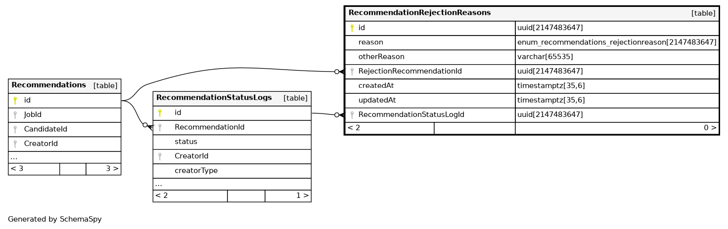 | RecommendationRejectionReasons_pkey | Primary key | Asc | id |