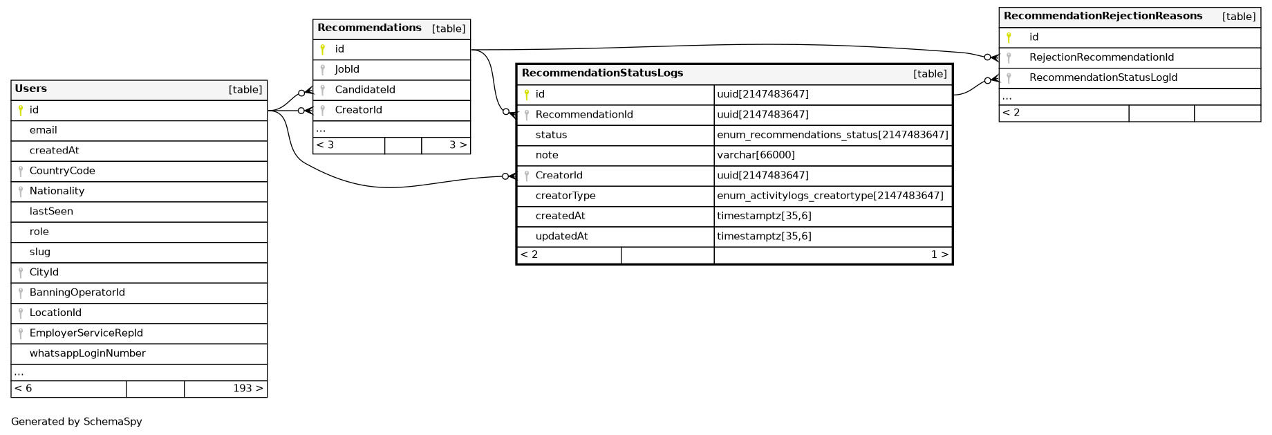 | RecommendationStatusLogs_pkey | Primary key | Asc | id |