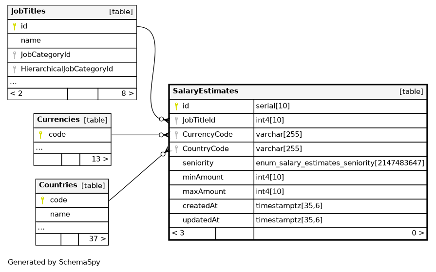 | SalaryEstimates_JobTitleId_seniority_CountryCode_key | Must be unique | Asc/Asc/Asc | JobTitleId + seniority + CountryCode |