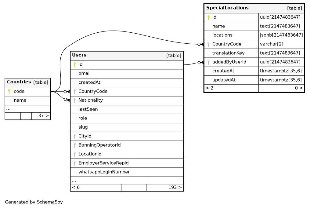 | SpecialLocations_name_CountryCode_key | Must be unique | Asc/Asc | name + CountryCode |