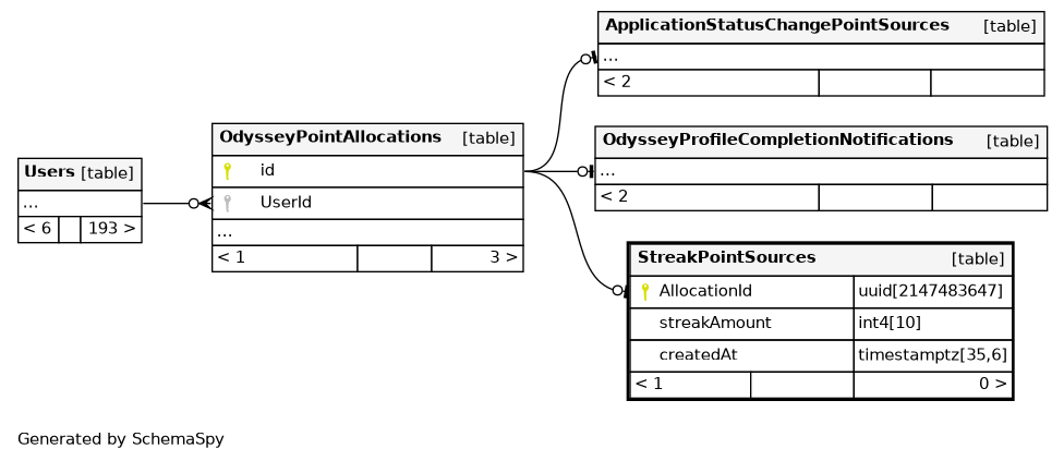 | StreakPointSources_pkey | Primary key | Asc | AllocationId |