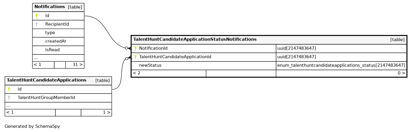 | TalentHuntCandidateApplicationStatusNotifications_pkey | Primary key | Asc/Asc | NotificationId + TalentHuntCandidateApplicationId |