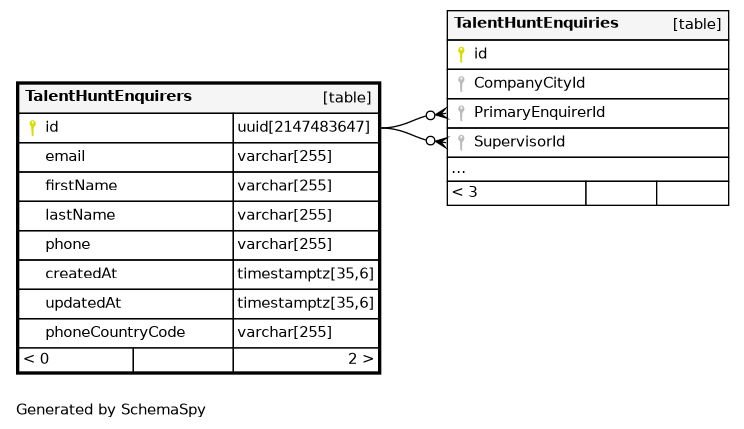 | TalentHuntEnquirers_pkey | Primary key | Asc | id |