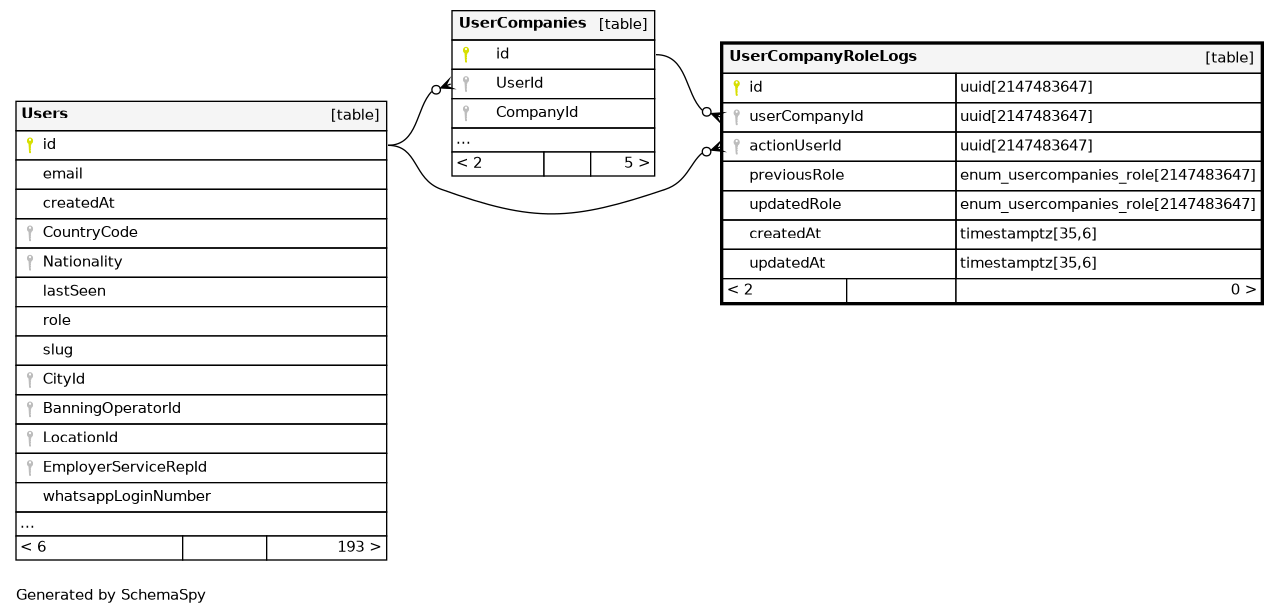 | UserCompanyRoleLogs_pkey | Primary key | Asc | id |