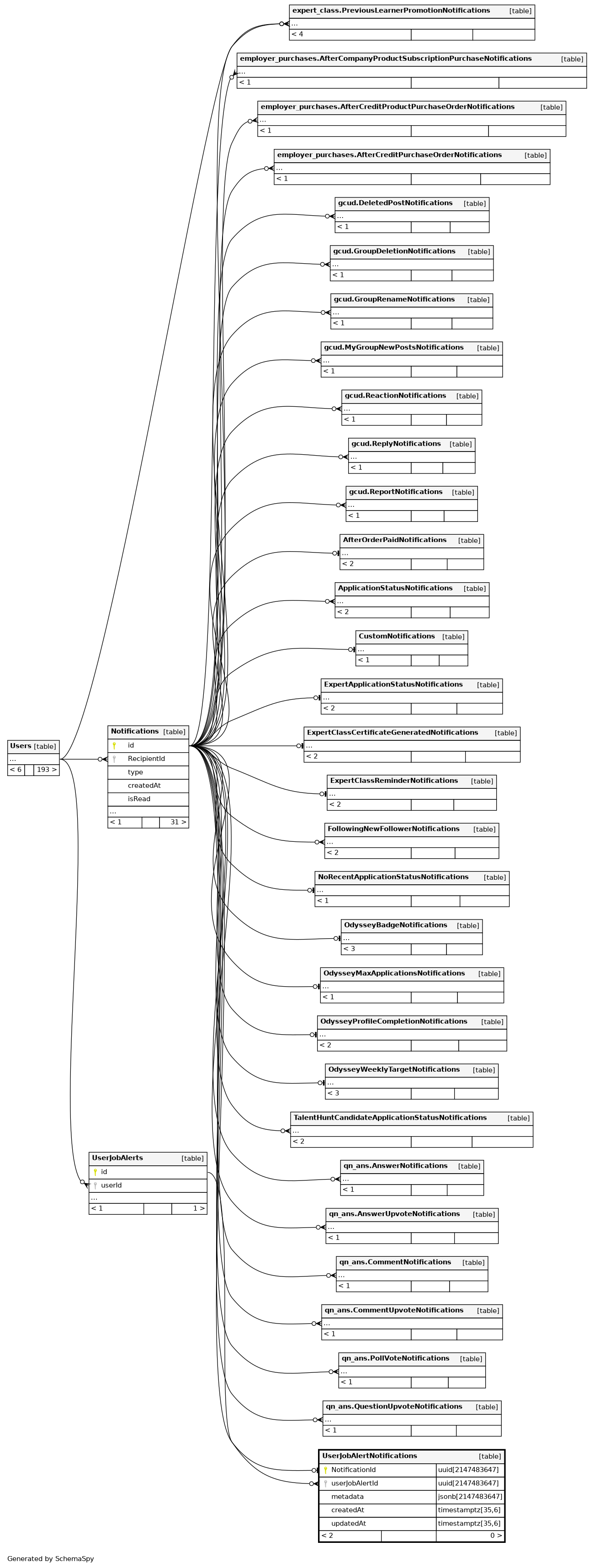 | UserJobAlertNotifications_pkey | Primary key | Asc | NotificationId |