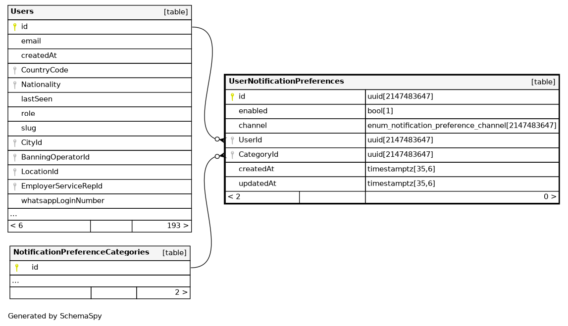 | UserNotificationPreferences_pkey | Primary key | Asc | id |