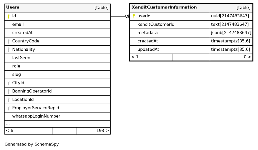 | XenditCustomerInformation_pkey | Primary key | Asc | userId |