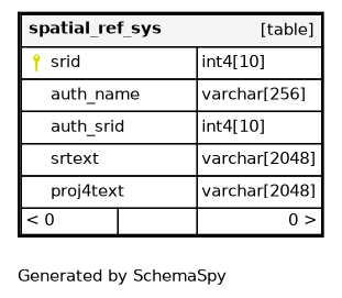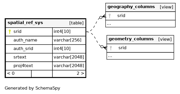 | spatial_ref_sys_pkey | Primary key | Asc | srid |