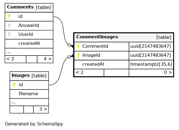 | CommentImages_pkey | Primary key | Asc/Asc | CommentId + ImageId |