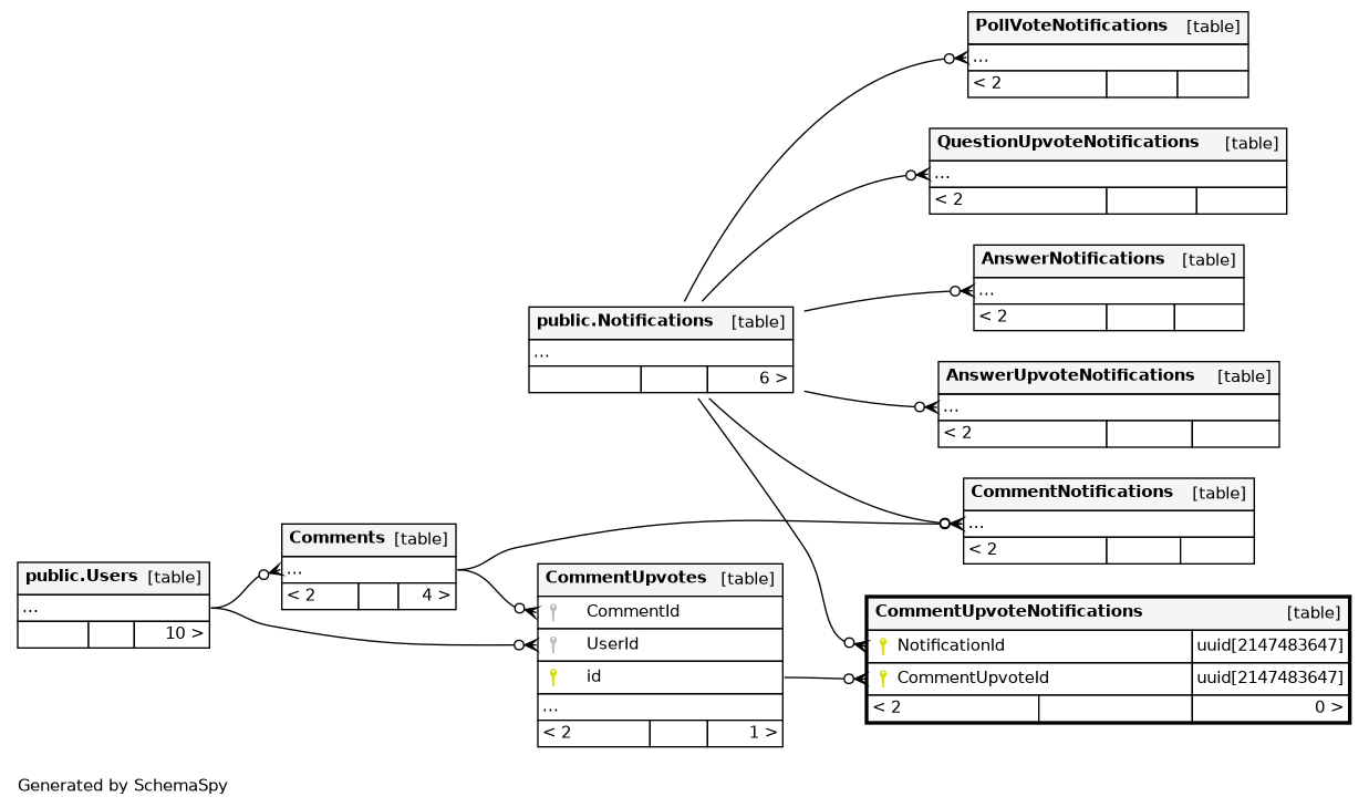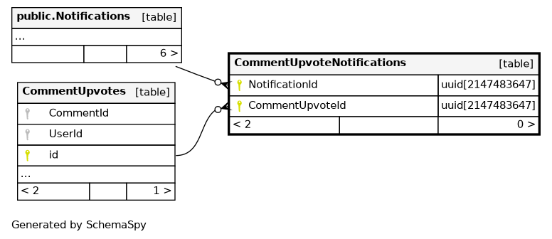 | CommentUpvoteNotifications_pkey | Primary key | Asc/Asc | NotificationId + CommentUpvoteId |