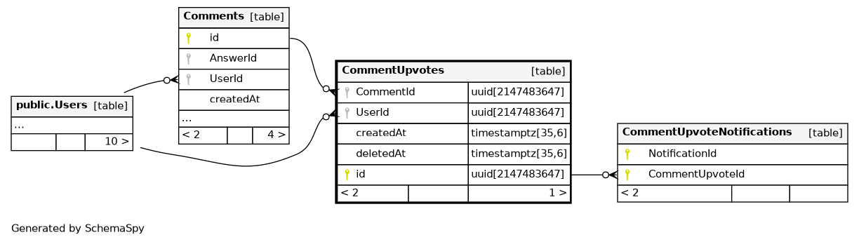 | CommentUpvotes_pkey | Primary key | Asc | id |