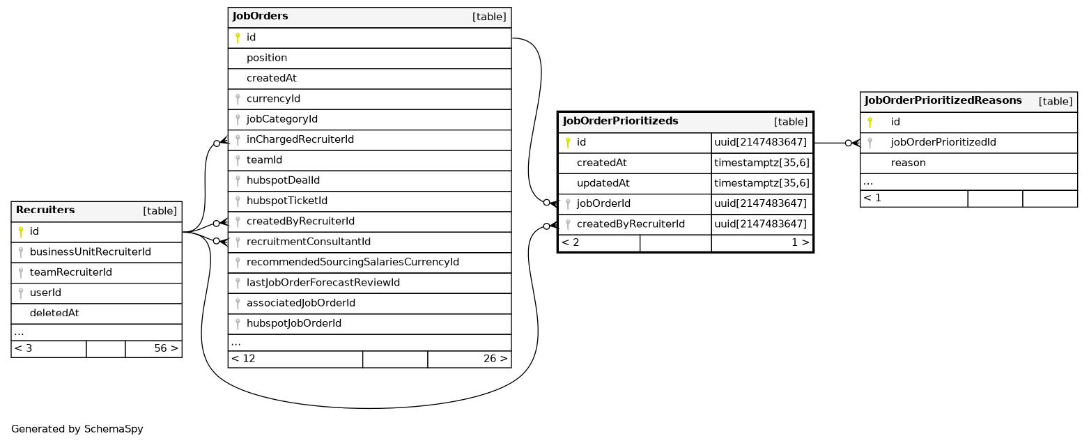 | JobOrderPrioritizeds_createdByRecruiterId_idx | Performance | Asc | createdByRecruiterId |