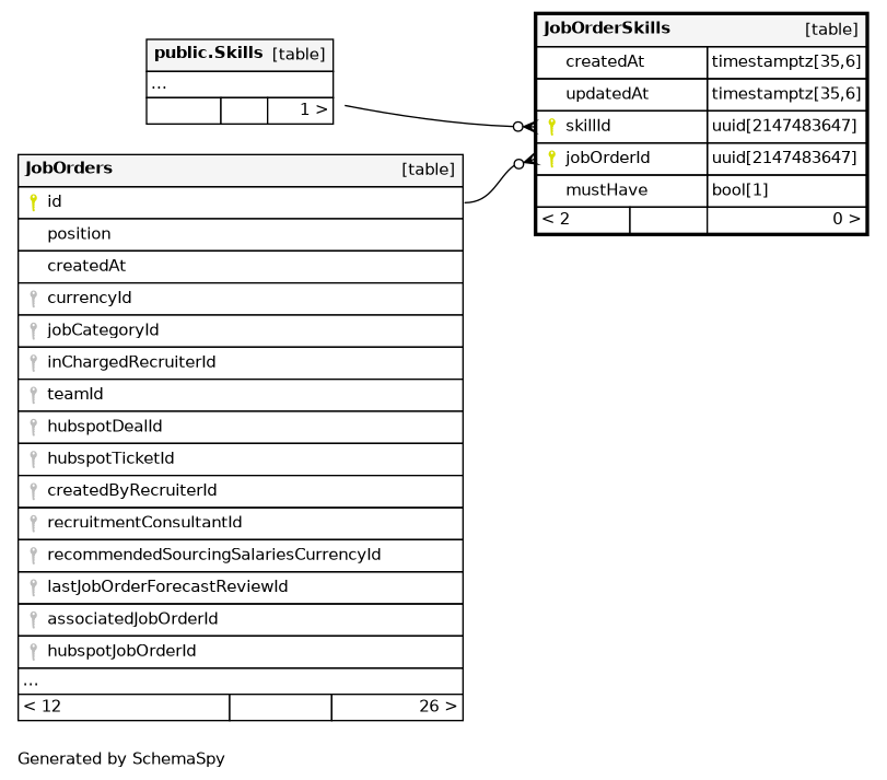 | JobOrderSkills_pkey | Primary key | Asc/Asc | skillId + jobOrderId |