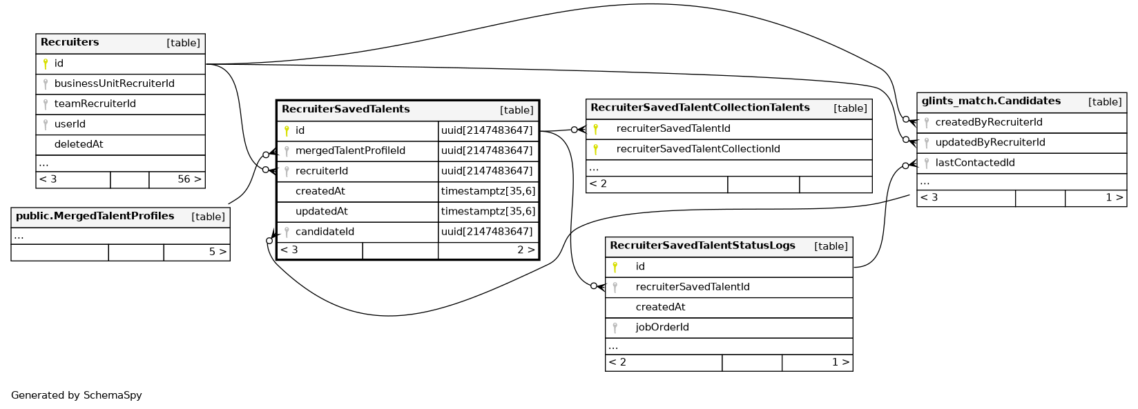 | RecruiterSavedTalents_recruiterId_mergedTalentProfileId_key | Must be unique | Asc/Asc | recruiterId + mergedTalentProfileId |