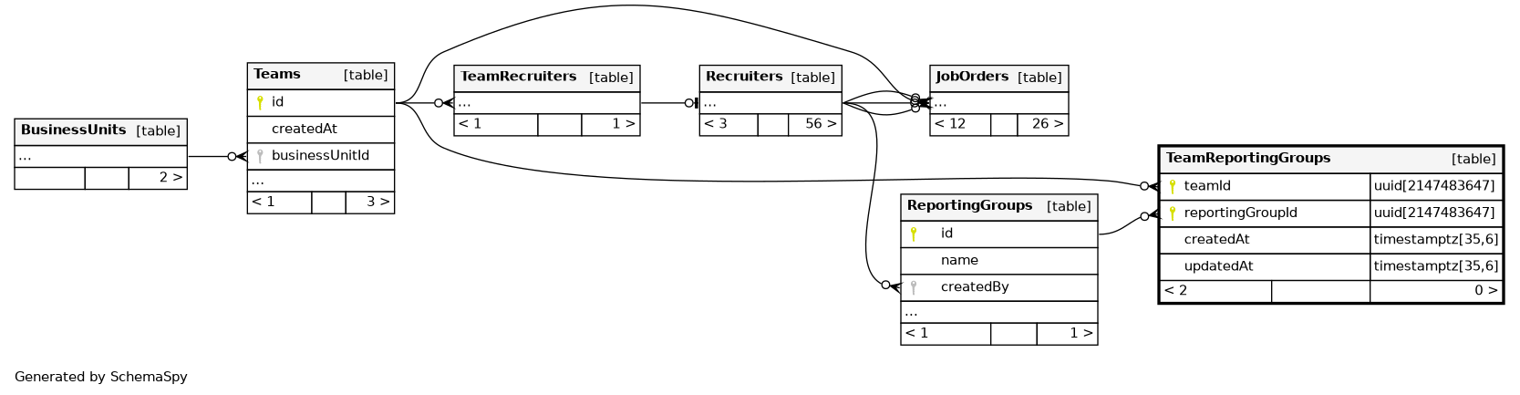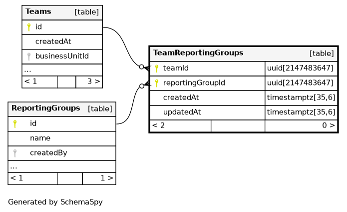 | TeamReportingGroups_pkey | Primary key | Asc/Asc | teamId + reportingGroupId |